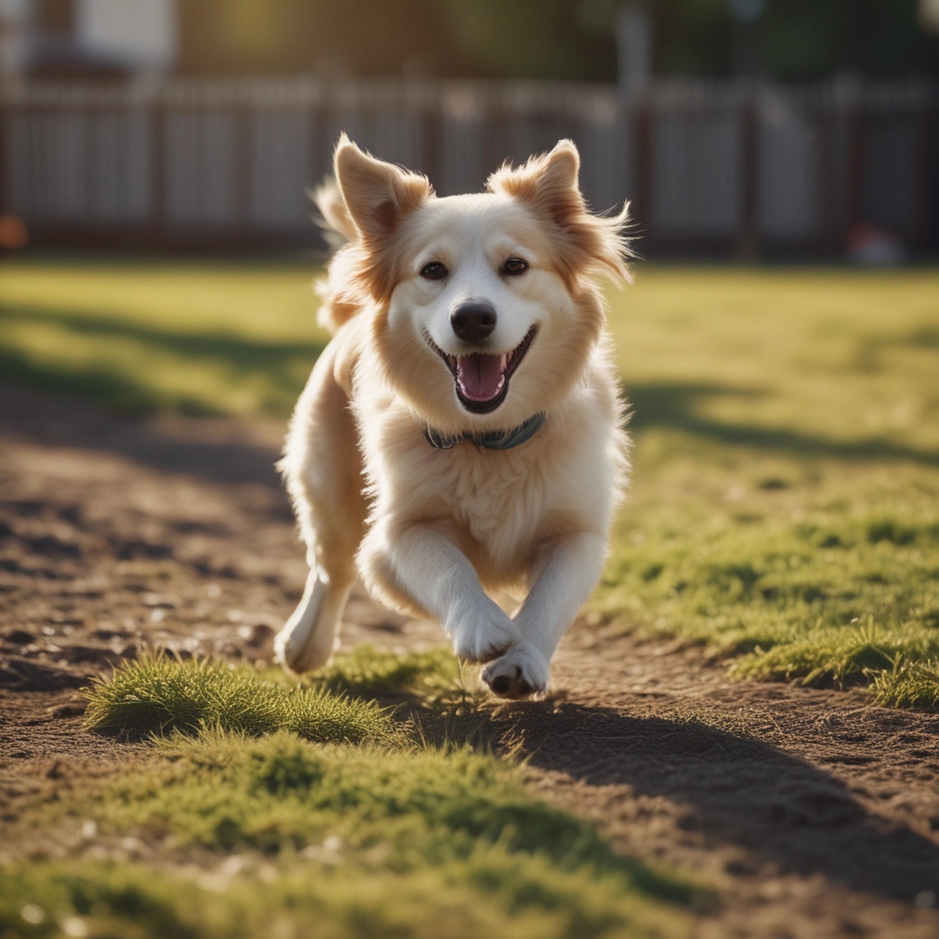 A happy dog playing in a spotless, freshly cleaned backyard.